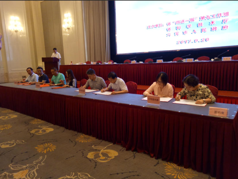 2017年9月20日,为有效解决实体经济发展中面临的突出问题,持续优服务、稳增长、促转型,努力营造有利于实体经济发展的良好环境,安徽省“四送一服”第九工作组、安徽省科技厅、六安市政府联合举办的“四送一服”双千工程创新成果创新项目创新服务路演对接会在六安曙光铂尊酒店隆重召开,出席会议的有省委常委、组织部长、常务副省长邓向阳,省委常委、六安市委书记孙云飞,六安市委副书记、市长毕小彬,省政府及省科技厅有关领导、省“四送一服”第九工作组全部同志、中国科学技术大学、合肥工业大学等10所高校院校相关负责同志、市政府相关负责同志、市“四送一服”双千工程领导小组全体成员、科技局、发改委、经信委等部门主要负责同志、各县区政府主要负责同志和安徽美自然环境科技有限公司董事长周其胤以及相关企业主要负责人。会议中,省委常委、组织部长、常务副省长邓向阳发表重要讲话,并指出,“四送一服”双千工程开展以来,各项工作扎实推进,成效逐步显现,得到了社会各界的普遍好评。各地要结合“四送一服”双千工程的开展,进一步提升行政效能,优化企业经营环境。广大企业要加大研发投入力度,全力推进企业创新、产品创新、市场创新;广大科研院所要加大技术研发和应用,更好融入地方经济社会发展。中国科学技术大学、合肥工业大学、安徽农业大学、安徽医科大学、安徽科技学院、安徽省农业科技研究院、安徽三祥科技咨询有限公司等7家高校院所介绍各自优势科研领域和科技成果。中科大先研院、合工大智能院、中科院创新院组织各自的2项科技成果,进行项目路演。