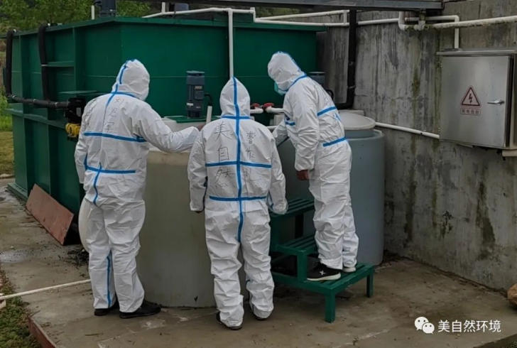 美自然集团高度重视,积极参与,董事长周其胤指派公司专业团队第一时间赶赴现场。在用于隔离的酒店现场,美自然公司的专业团队,冒着雨水,认真严谨地检查污水设备及管道,针对疫情期间的特殊要求,确定最佳处理方案,24小时值守,确保隔离酒店的污水达标排放。